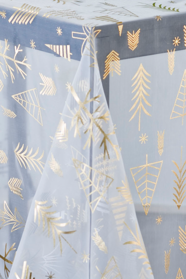 Cette nappe en organza dévoile un motif de sapins stylisés et de petites étoiles délicatement scintillantes. Son voile léger crée un effet transparent très chic, parfait pour sublimer un centre de table ou mettre en valeur la vaisselle des fêtes. Réversible, elle permet de varier lambiance selon vos envies : une face plus douce et lumineuse, et lautre plus brillante pour un rendu plus spectaculaire. Déclinée en or ou en argent, elle saccorde facilement avec toutes les décorations de Noël, du plus traditionnel au plus moderne. Idéale pour donner instantanément un esprit féérique à votre intérieur.